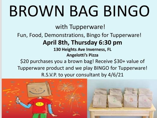 Brown Bag Bingo Featuring Tupperware Angelottis Angelotti S Pizza Inverness 8 April 21